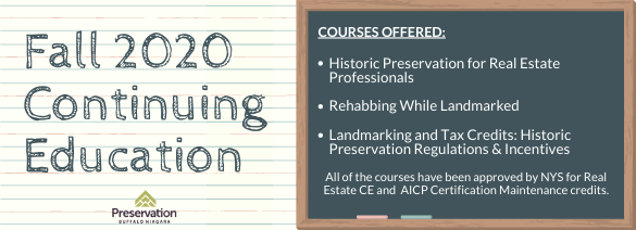 Need continuing education credits? Want to expand your understanding of preservation? Don’t worry, PBN is here for you! Our continuing education courses are designed to help real estate professionals, planners, and architects increase their awareness of preservation principles & best practices. All of the courses have been approved by the NYS Department of State for Real Estate Continuing Education Credit and by the Western New York Chapter of the American Planning Association for AICP Certification Maintenance credits.